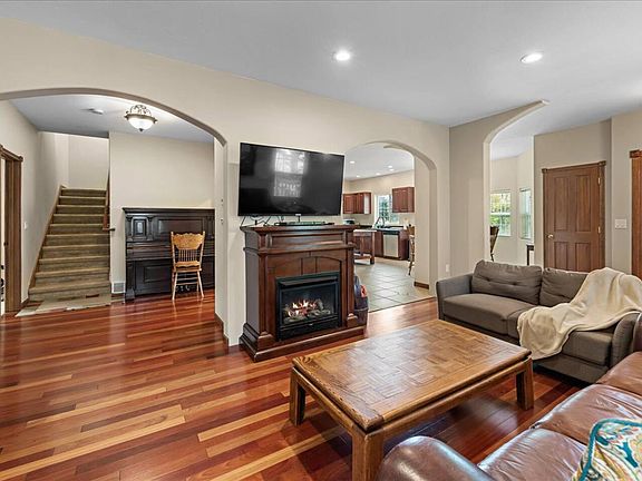 Natural gas fireplaceWolf rangeAmple dining spaceFlowing floorplanOutdoor playPrivate balconyRemote office space