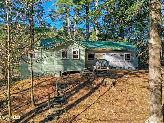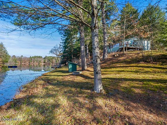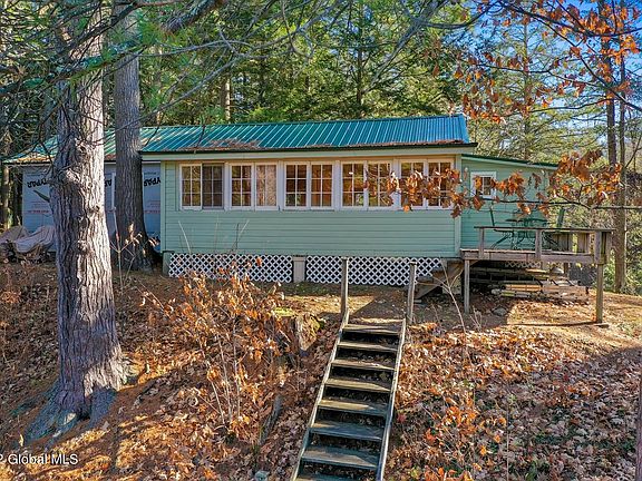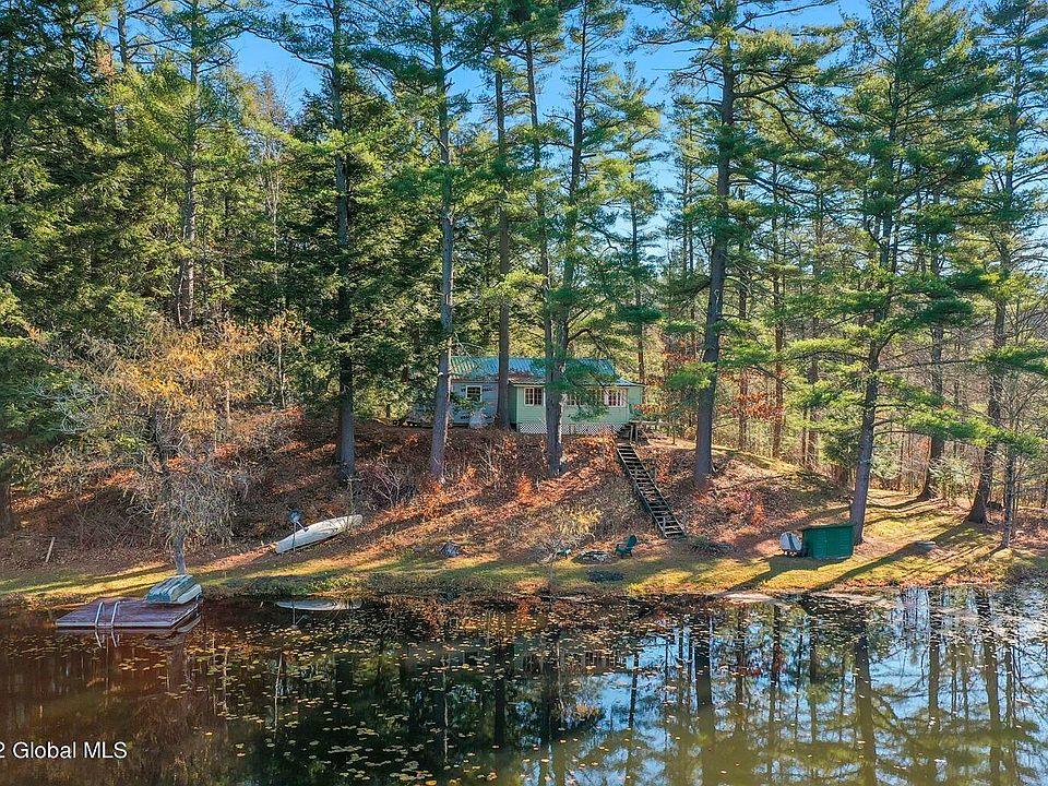 On Green Pond. Over 240' of water frontage is enjoyed on this private non-motorized lake. This charming seasonal camp has been tastefully renovated and offers an entry way leading into a kitchen, dining and living area with lots of windows and vaulted ceiling, plus 2 bedrooms and a full bath. A gas stove provides heat for chilly mornings and a large deck is perfect for afternoon entertaining. Green Pond is an approximately 13 acre spring fed pond and is a wonderful place to swim, fish, kayak or paddle boat. A few finishing touches are currently being made on the cabin.
