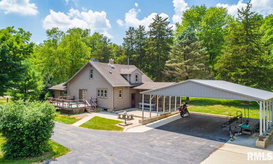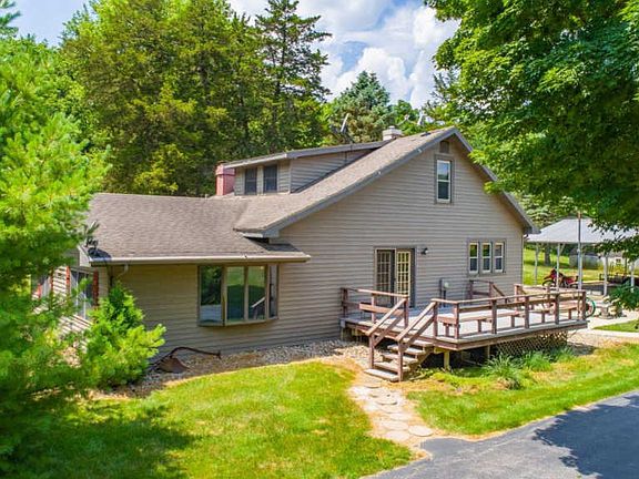 Beautiful 3 bedroom / 2 full bathroom home nestled on 2 ACRES w/ 2 different GARAGES/ OUTBUILDINGS & shed. ATTENTION GARAGE ENTHUSIAST... 22X32, 2.5-car-garage w/ electric & loft. 29x35 outbuilding w/ 1-car-garage, heat, electric & concrete floor! Additional 26x32 industrial carport! 19x14 composite deck overlooks usable, park-like yard surrounded w/ timber. Stunning formal dining room opens to family room featuring grand, stone fireplace & wood floors. Sunken living room w/ new carpet & built-in shelving. Large main floor master bedroom. Updated main floor bathroom w/ skylight. Kitchen w/ ample cabinetry, tile floors, all appliances stay & tons of counter top space! Upper level showcases 2 large bedrooms & 2nd full bathroom! Tranquil, 16x13 three season room w/ ceiling fan. Nice landscaping! Washer & Dryer Stay! Generator stays!