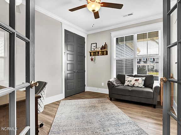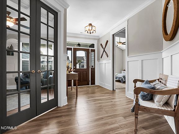 As you enter the grand foyer, you will immediately notice beautiful LVP floors installed throughout the entire main home. On your right is the first bedroom shielded by a set of French doors which the current owners use as an office.