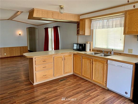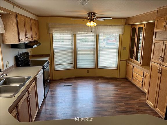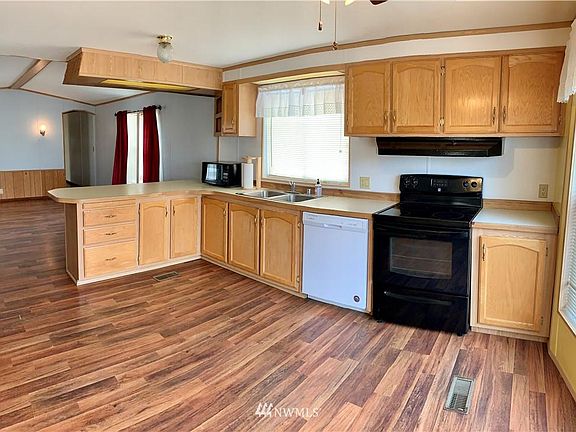 Affordable 2 bed/1 bath, 938sqft, 1994 manufactured home in the well-kept Cook Creek Court in Kittitas. The 55+ community has easy access to town & shopping/dining just a couple blocks away. This home has been maintained & updated for comfortable living. The home features forced air heating/cooling, laminate floors for easy cleaning, & nice carpeting in the bedrooms. The master bedroom has 2 full closets & access to the full bath with soaking tub, walk in shower, & double vanities for getting the morning started. Outside is a nice side yard & protected entry porch for relaxing. The lot has 2 parking spaces & a useful storage shed in the back. Only $520/month for the lot rent that includes sewer, water, & garbage. Come take a look today!