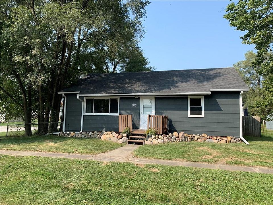 UPDATED home in I35 schools!! The exterior welcomes you with amazing landscaping, freshly painted exterior, new roof and mature trees. Entering through your new doors you will notice all the natural light the open floor plan and new windows provide. Your large family room transitions into a dining space with new slider, and kitchen. Also included in the main level is the full bathroom, two generous size bedrooms, and main floor laundry. The remodeled upper level can be used as a third bedroom, children's play space, or rec room. Out back is a great sized deck for entertaining, mature trees, a hot tub that stays, and access to your oversized 2+ heated garage for storage and hobbies! The big ticket items like the roof, AC, furnace, and hot water heater provides the new homeowner extra peace of mind. Come check out your new home today!