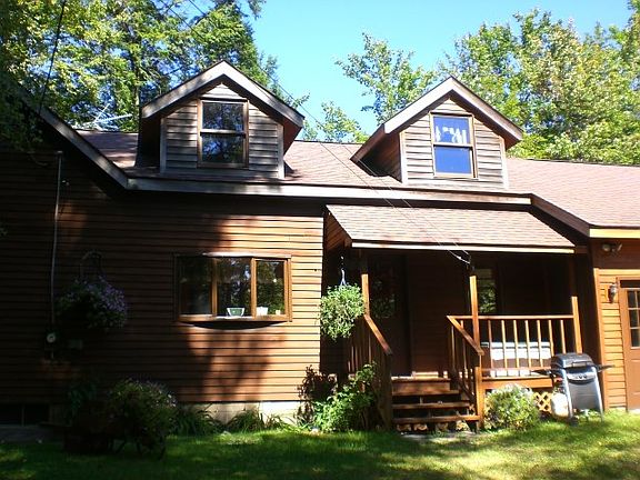Pleasant Lake, Gorgeous Western lake views, privacy, beautiful custom excellent craftsmanship, 1-Owner 3BR/2BA home. Surrounded by State Land & Snowmobile trails, on a Motor Friendly lake. Main Floor Master BR adjoins full bath w/Jacquzzi tub & shower. Adirondack Charm, natural wood, knotty pine, vaulted ceilings & fireplace accents open kitchen, dining & liv rm overlooking the lake. 75ft sandy easy access lakefront w/docks & firepit! Wrap around deck, 2 car garage, woodshed & more. What more do you need?