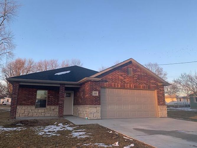 Built in 2020 this hard to find All Brick home features 3 bedrooms, 2 full baths, 3 car attached garage, and1357 finished sq. ft. Home features open floor plan, new paint, all appliances including water softener, concrete kitchen countertops, pantry, all electric. Recessed master bedroom ceiling, master bath with tub shower combo, walk-in closet. Covered front porch, covered back patio, epoxy finish on floor in garage complete this move-in ready home.