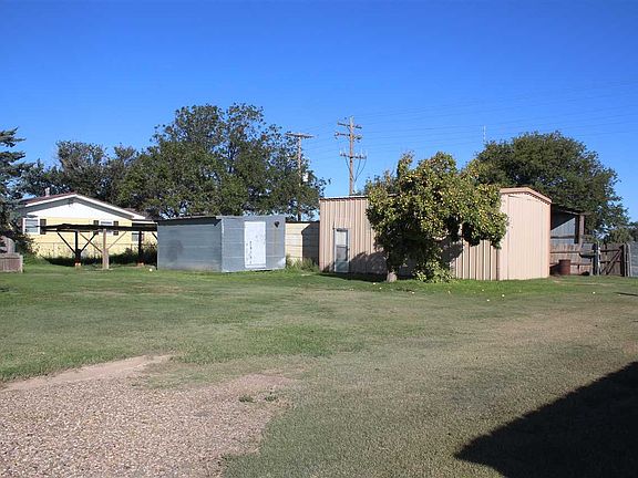 House sits on 1.24 Ac., Three bedroom two bath with livingroom and den, newer windows, painted outside in May 2017, metal roof, storm shelter, new well and septic system. Nice shop and several storage buildings.