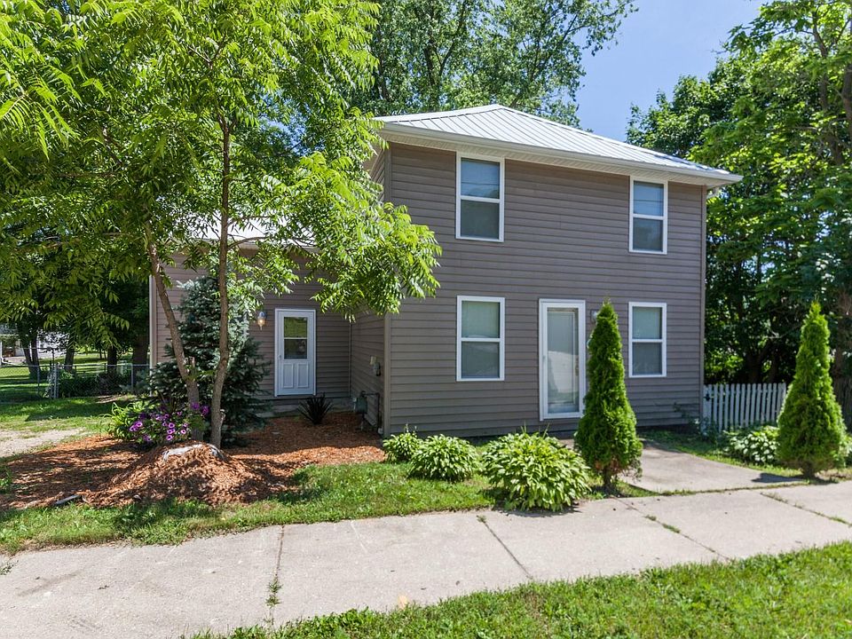 Welcome home to this extensively updated/remodeled home in the heart of Eagle. Walk to restaurants, bank and gas stations! TONS OF UPDATES: kitchen, bathrooms, some flooring, electrical, metal roof, gutters, furnace, A/C, many windows, siding, 1st floor laundry, insulation and much more! Walk right into your large kitchen with mostly new cabinets, countertops, dishwasher, oven, garbage disposal, etc. Kitchen also has butcher block top island & breakfast bar. First floor also features dining room, living room, laundry & full bathroom that has tub and walk in shower. Upstairs has a great lofted/office area, a convenient half bath & three bedrooms. Master bedroom is HUGE! Backyard has beautiful mature trees that you can enjoy while sitting on your deck...very private! Yard is mostly fenced.