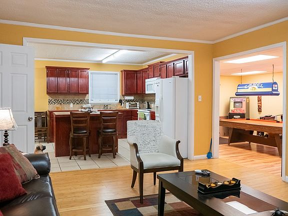Unique property. Unrestricted 1.27 acres. Remodeled, 3 bedrooms, 2 1/2 baths, brick porch with finished lower lever. Rec room with pool table on 1st floor, plus workout room and flex room in basement. 1200 square foot building 2 car carport. Plus a finished building with 1/2 bath and central air. Could be used as a home business or body shop and or rental property. Large covered patio.