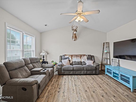 Nestled in the quaint community of Tealbriar just 30 minutes from Wilmington, you'll find more than just a home. You'll find more than freshly painted walls and open concept living. 105 E Woodbine Terrace is ready to be loved again by someone new. This home has undergone many upgrades and is ready for you to make it your own. As soon as you walk in the front door, you're met with vaulted ceilings in the large living room. Perfect for entertaining, the kitchen and dining area are conveniently situated behind the living room and you'll find the expansive covered porch off of the dining room, creating the perfect flow and atmosphere for family, friends, and fun. From the living room, you're met with a connecting hallway housing the laundry closet, two guest rooms, a full bathroom, and linen closet. The large owners suite, equipped with two closets, built-in bookshelf, and en-suite, is tucked away in the back of the home for ample privacy and relaxation. An updated home with an ideal floor plan situated on nearly a third of an acre = easy living. Make this house your home today.