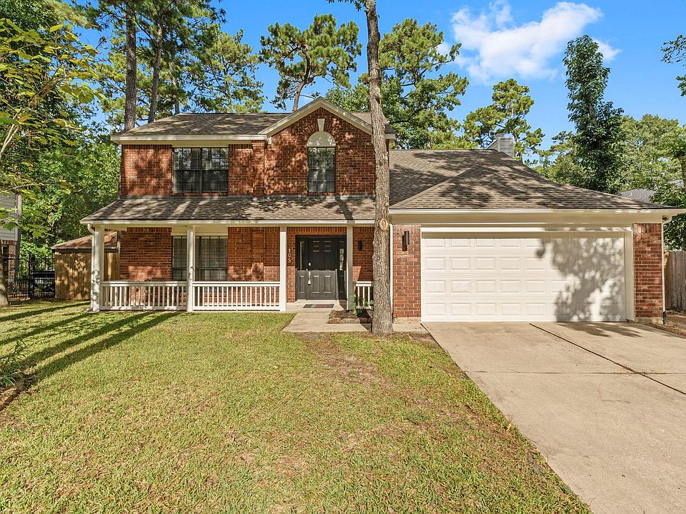 BEAUTIFULLY UPDATED 4 Bedroom, 2.5 Bath in the heart of THE WOODLANDS. This home has a light, bright interior with fresh paint, luxury vinyl plank floors, neutral tile in bathrooms, & LED lighting. BEST OF ALL - NO CARPET HERE! Enjoy the modern kitchen with its white subway backsplash, stainless steel appliances & deep "farmhouse" sink - open to the family room. The spacious primary suite boasts high ceilings and a remodeled bathroom with frameless shower enclosure and garden bathtub. Multiple living spaces downstairs. All 4 bedrooms upstairs. Large back yard with plenty of room for sports, pets or entertaining. Prime location with easy access to shopping, dining, parks, schools and recreation. Walking Distance to Falconwing Park, bike trails & one of several public pools. ZONED FOR EXEMPLARY WOODLANDS SCHOOLS. LOW TAXES TOO!!! Roof (2022). HVAC (2021). Water Heater (2021). Washer & dryer may be included with the purchase of the home. Hurry, this one won't wait!