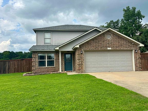 Very well kept 4 bedroom, 2 bath, all brick home with 12x16 patio covered all in closed in large privacy fenced backyard backing up to green space. Split floor plan with master downstairs & 3 bedrooms upstairs with 2nd living area, hardwoods in living room & stair way. Master has large walk-in closet, jetted tub, separate shower, bath has double vanity. Extra storage under staircase. Extra wide driveway to hold multiple vehicles.