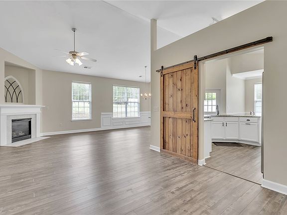 Welcome home to this bright, beautifully designed 3-bedroom, 2-bath stunner that checks all the right boxes. With a spacious open-concept layout and thoughtful finishes throughout, this home blends comfort and modern style in all the best ways. The main living areas feature luxury vinyl plank flooring—stylish, low-maintenance, and perfect for busy lives. The kitchen shines with classic white cabinetry, generous counter space, and stainless steel appliances, making it the heart of the home. Cozy up around the gas log fireplace in the living area or entertain with ease thanks to the seamless flow from room to room. The primary suite provides a peaceful retreat with a dual-sink vanity, relaxing garden tub,and separate walk-in shower—your personal spa escape. Upstairs, a large bonusroom gives you flexible space for a home office, media room, workout zone, or all of the above. Out back, enjoy year-round relaxation on the covered patio overlooking the backyard—perfect for morning coffee, weekend grilling, or simply kicking back. With modern finishes, versatile spaces, and inviting charm, this home is ready to welcome you. Come take a look—you’ll feel right at home.