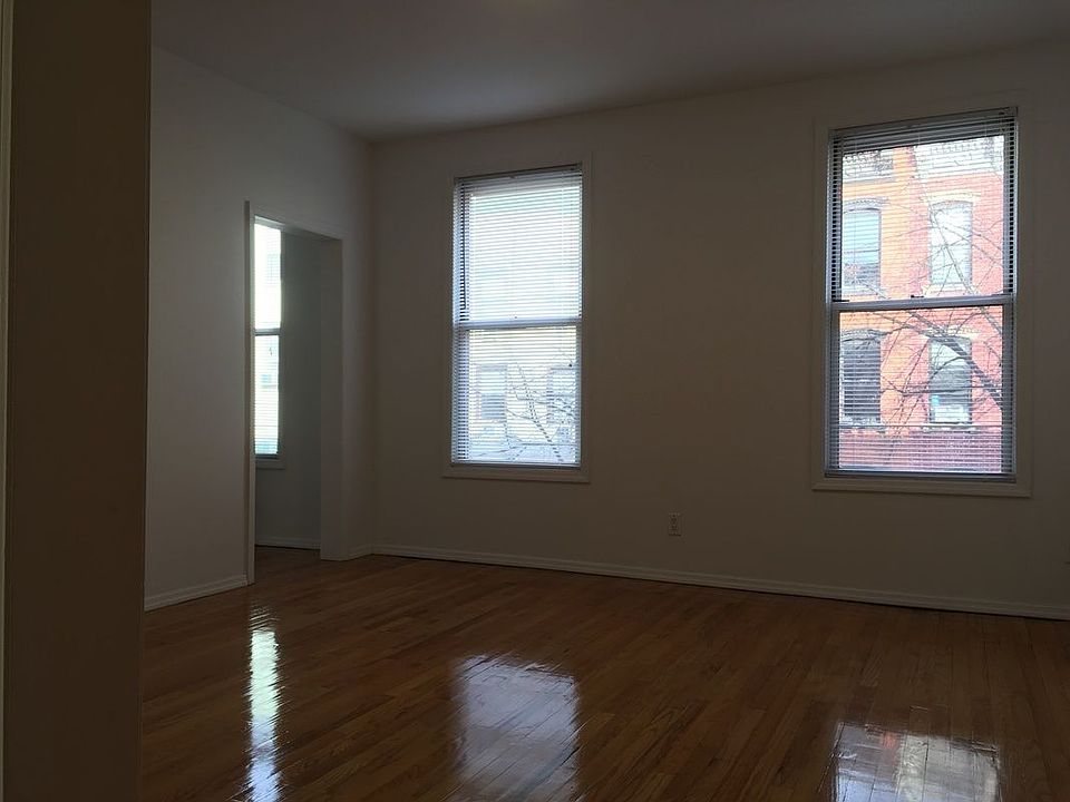 This excellent condition apartment is located on the second floor of a 3 family townhouse. The unit has hardwood floors, a recently renovated eat-in-kitchen with new appliances, a nice size full bathroom with bathtub and window, an entry foyer with hall closet, a living/dining room combination space and a full size bedroom with closet and small alcove office area with ceiling fan. Spacious at approximately 836 sf. Unit has been professionally cleaned and is available for immediate occupancy. Floor thru unit has great unobstructed street views and has been well maintained. Located on a residential street close to McCarren Park, shops, new organic market, and two short blocks to the G train Nassau Station. Heat and Hot water is included. 2300/mth. Easy to show. call Brooklyn Ports Realty