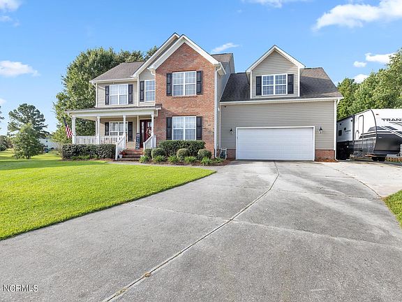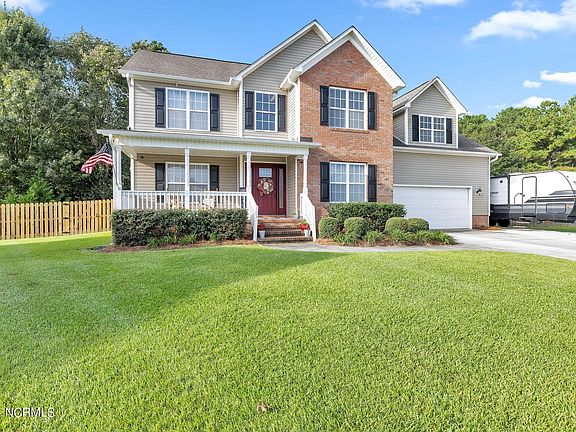 What a combination-great home and great yard! Beautiful home site on cul-de-sac with 1.9 acres and a large privacy fenced yard that includes an oversized deck and patio! Two story foyer featuring LVP flooring welcomes you into this over 2400 HSF, 3 bedroom with large bonus room home. Formal rooms to include the living room and a dining room with LVP flooring accented with a trey ceiling. Roomy family room with gas logged fireplace and ceiling fan. Large open kitchen complete with lots of cabinets, tons of counterspace, bar area with extra seating and an island as well! Beautiful wood stairway. Large spacious bonus with jet out room plus additional flex space upstairs! Spacious master bedroom accented with a beautiful trey ceiling and ceiling fan. Gorgeous en suite with standalone tub and multihead tiled shower! 2 car garage. Minutes to all bases and our beautiful beaches!