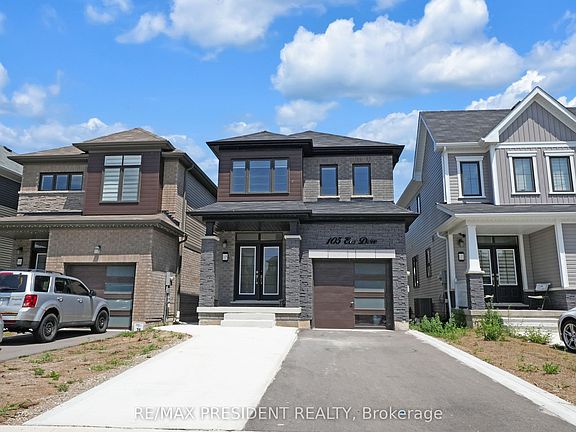 Introducing 3+1 Bedroom 4 Washrooms Home with 2nd dwelling Legal basement Situated At 105 Eva Drive In Breslau. The House Features A Grand Foyer, An Open Concept Layout, 9-Foot Ceilings, Hardwood And Ceramic Floors, And A Modern Kitchen With An Island. The Second Floor Boasts A Luxurious Master Bedroom With A Walk-In Closet And En-Suite Bathroom, As Well As 2 Additional Bedrooms With Large Windows. Attached Garage And Private Driveway Allows For Up To 5 Parking Spots. This Gorgeous Home Is Located In A Highly Sought-After Location, With No More Developments On The Adjacent Land, Ensuring Privacy For The New Homeowners. Furthermore, A Park Is Slated To Be Built On The Adjacent L and, Adding To The Already Abundant Green Spaces And Parks In The Area. Conveniently Located Close To The Highway, Waterloo Airport, Schools, Parks, And Trails, This Home Is Ideal For Families Or Anyone Looking For A Comfortable And Luxurious Living Space. 1 Bedroom Legal Basement apartment with Separate side Entrance with Potential Rental Income.