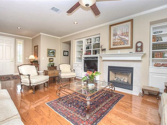 Sun City Williamson floor plan built under Del Web has been customized to offer a flex room as well as office area with custom built-ins. Island kitchen, gas cook top, pull-out in kit cabinets, Plantation Shutters, Hardwood flooring in entry and Living area, Garage has utility sink, built ins, finish on floor . Bay Windows in Kitchen and Master+++more. See Docs. HVAC System late '17, Washer-Dryer, Refrig to convey. Mature landscape gives privacy to patio area. Fully fenced yard. No Steps.
