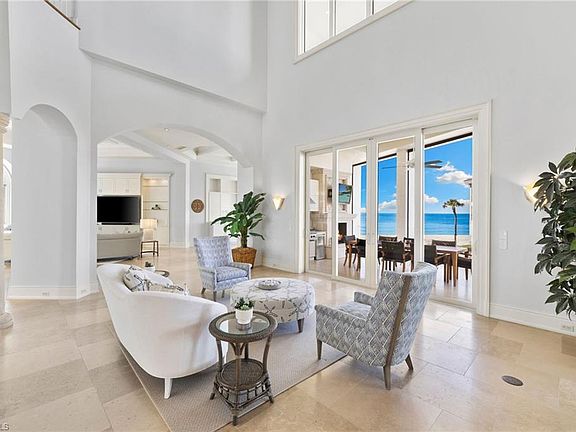 Elegance defined along the shoreline. This extraordinary beachfront residence captures the essence of refined coastal living with panoramic Gulf views and luxury woven into every detail. The entire fourth floor is dedicated to a private master sanctuary - an expansive retreat with a spa-inspired dual bathrooms, oversized closets with custom cabinetry and an open-air patio overlooking the breathtaking blue-green waters of the Gulf. Thoughtfully designed for both beauty and function, the home features a gourmet chef’s kitchen with two generous islands, Wolf and Subzero appliances with seamless flow into the main living spaces. Walls of impact-rated windows invite in natural light and endless water vistas, while an elevator ensures effortless access throughout the four floors of the home. Each of the four additional bedrooms features its own en-suite bath, giving family and guests a luxurious sense of privacy. A three-car garage provides ample space for vehicles, storage and beach essentials. On the primary living level, a covered lanai with an outdoor kitchen offers a stunning setting for entertaining with the Gulf as your backdrop. Just outside your door, an in-ground heated pool creates the perfect spot to unwind. Electric storm shutters offer added protection and peace of mind. Blending sophistication with coastal serenity, this exceptional home elevates beachfront living to an unparalleled level.