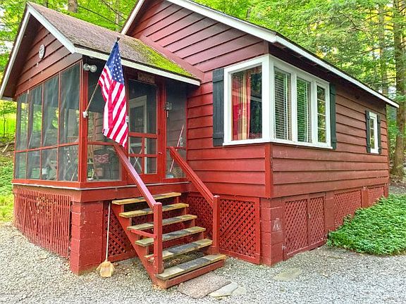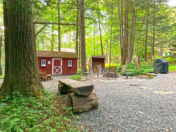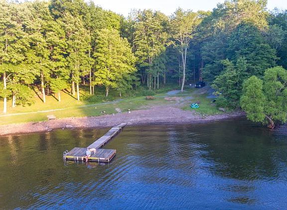 Just a short, level walk to your boat slip, swim dock, and beach area on Lake Wallenpaupack from this meticulously maintained 2 bed (& sleeping loft), 1 bath Gumble cottage! No need to cross any streets, as it's located down a private road that is cared for by the Beechwood Cove community. Open floor plan, hardwood floors, and knotty pine interior with exposed wood ceiling and beams. Plenty of room for entertaining from the screened porch to the large stone patio with fire pit. No lack of storage space with your own utility shed. Electrical system has been updated. New ductless AC heat mini split unit for a cost-effective utility bill. Backup propane heater installed. New electric stove. Private boat launch area. Very low taxes and dues! Come and relax on the sunset side of the lake!