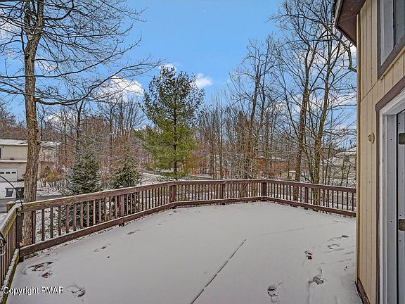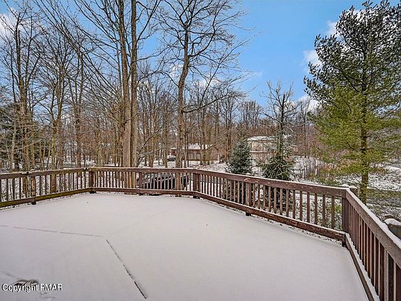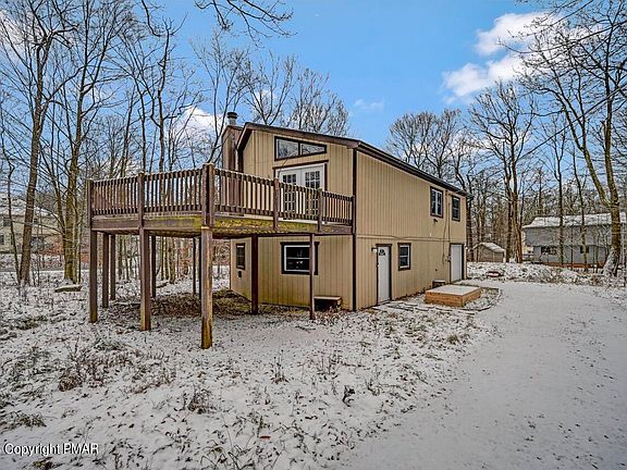 Peaceful sanctuary in a central location. 4 bedroom, 2 full bath, move-in ready home on serene corner lot. Entertain in the spacious living room with a wood fireplace and beautiful vaulted ceilings, or take the party outside onto the 400 square foot deck overlooking Norway spruce trees. Attached garage. Minutes from the best shopping and attractions in the Poconos, for vacation getaways or everyday convenience. Upgrades include new septic pump, Ring doorbell, kitchen sink, smart thermostat, garage door opener and deck door. Photos 6-13 are virtually staged to see how it can be set up with furnishings.