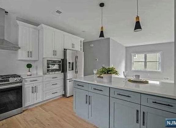 Be the first Tenant for a Brand New construction, 2 Family house 2ND Floor. Located in a very desirable section of Rutherford. Look over NYC skyline. Large living room. 3 Bedrooms 2 full bathrooms with a master suite! Kitchen with s/s appliances. Hardwood floors throughout and tiled bathrooms. White kitchen cabinets, tiled backsplash with quartz countertop. Central A/C and Heat, W/D in unit. Water and 1 parking spot included. Blue Ribbon school district. Easy to commute, 1 blocks to Train & NYC Bus. Owner pays water, One assigned parking included. Tenant pays gas, electricity, 1year+ lease term.