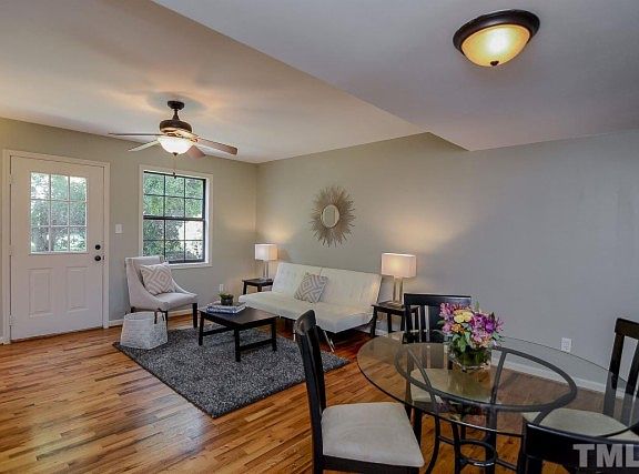 Live in the heart of Carrboro! Beautiful end unit in desirable white oak community. Hardwoods through main living area and bedrooms. Kitchen features updated tile floor, countertops, backsplash and appliances. Fully remodeled full bath upstairs. Great location close to bus stop, gym, Weaver St & Farmer s Market. Walk or bike to UNC and enjoy the pool after a long day.