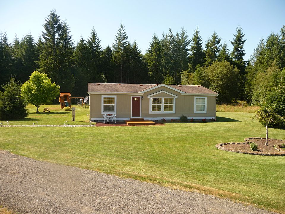 Level 5 acre parcel with a 3 bedroom, 2 bath 1995 manufactured home located south of Chehalis in a neighborhood of quality homes. Fully fenced with New Zealand fencing. Private septic and well, 2 bay garage with shop area - concrete floor, wired as well as a large added heated office/extra room with laminate flooring and recessed lighting. Fenced kennel area. Fire pit. Large garden area. Lots of fruit trees. Newer flooring/carpet and paint on interior as well as a brand new 30 year roof and a newly built front deck and back steps. Close to town yet private.
