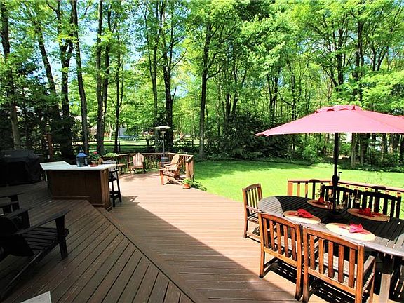 What a beauty -- welcome to your dream home in Bradford Park. Charming wraparound porch. Huge, level, almost-acre lot, with double decks, firepit, and hot tub. Remodeled kitchen with granite counters, breakfast bar, tile floor, new appliances, planning desk, eat-in area, second bar sink, new Pella slider to deck w/ auto-open. Open family room with built-ins, antique gas-starter fireplace, new Pella doors to deck & to living room. Bright & elegant formal living room with porch access and dining room with plate shelves. First-floor laundry and 2-story entry. Vaulted Master bedroom, large walk-in closet, jet tub and stained-glass in master bath. Three additional spacious bedrooms, one with vault ceiling & window seat/shelf. Lower level includes finished den with gas fireplace, half bath, finished gameroom, large storage room with exterior access. Tankless water heater, brand new furnace & a/c. Oversized attached garage with epoxy floor and stairs to huge storage room above. Warranty too.