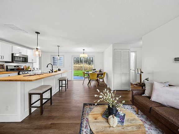 Private yardFirst-floor laundry roomWood countertopsGorgeous center islandFresh tilingNew lvt flooringNew glass slider