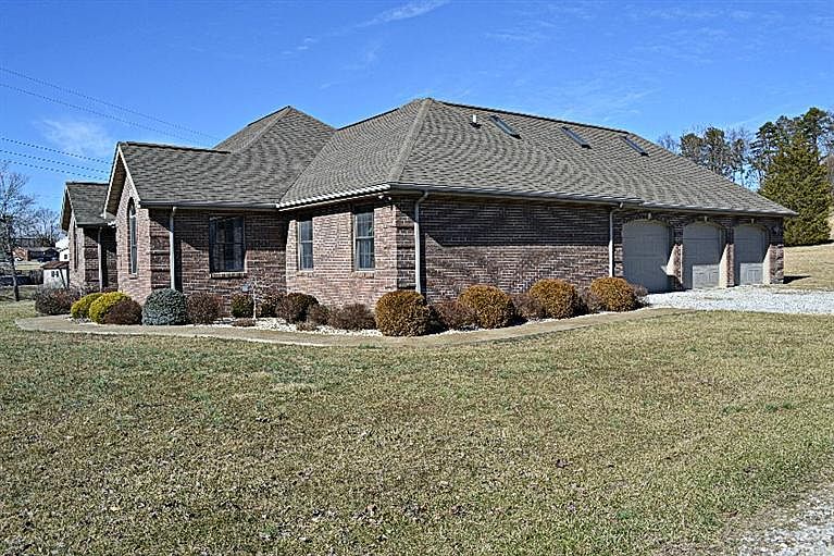 Beautiful Brick ranch home with a bonus room and office space upstairs . Split floor plan. Living room has vaulted ceiling. Custom Built to perfection. Gorgeous kitchen with cathedral ceiling and recessed lighting. Stainless Steel appliances. Gleaming hardwood floors. Large master suite. Over sized three car attached garage. Covered front porch. Nice back patio (great for entertaining) Situated on a nice level 1.20 acre lot. All this on KU electric. Make this your next home!!