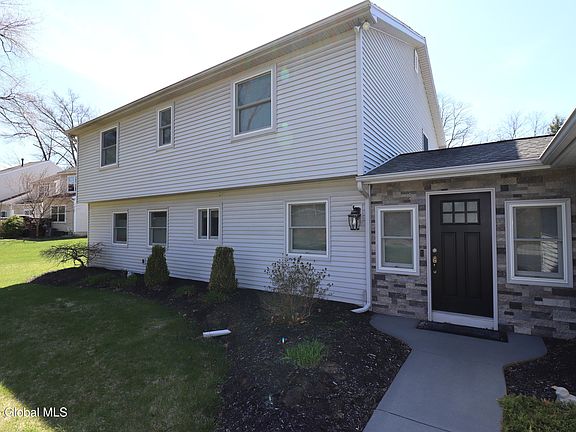 Pristine colonial in Guilderland with a private oversized fenced yard, perfect for entertaining! Enjoy the screened pavilion with bar, leading to a patio with inground Foyer/mudroom leads into an updated kitchen with stunning countertops, backsplash, tile flooring, and newer appliances. Kitchen opens into a large living area with floor to ceiling doors/windows and built ins for convenience. The oversized master suite features dual walk-in closets and a private bath with a spa like walk-in shower. Second-floor laundry adds convenience. Freshly painted interior, newer roof, furnace, AC, & windows, dual-zone heating, and a heated 3-car garage. Large walk-up attic for additional storage over garage. Pool house adds extra storage for lawn toys and houses pool equipment!