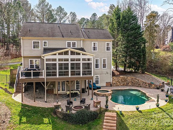 Stunning, Waterfront, Custom, 2 Story/Basement Home w/Salt Water Pool/Spa, located on .79 acre, cul-de-sac lot on Mountain Island Lake, in sought after Stonewater community! Bask in the beauty of your Outdoor Oasis w/luxurious Salt Water Pool/Spa & plenty of private lounging areas, including covered patio, all while enjoying Lake Views! This Home has so much to offer! Gorgeous Entry w/soaring ceilings & gleaming hardwood floors! Formal Living & Dining Room! Office w/French Doors, great for privacy! Gourmet Kitchen offers granite counters, stainless steel appliances, gas range, center island, tile back splash, custom lighting & pantry! Spacious Breakfast Area boasts ample natural light & great views of Pool & Lake! Spectacular, Coveted All Seasons Room (permitted)! Huge Primary Suite on upper level w/tray ceiling, hardwoods, private bath & walk in closet! Fabulous, Walk Out Basement w/Flex/Recreation Area including Media, Bedroom & Full Bath! *$25,000 Credit towards HVAC Replacement!*