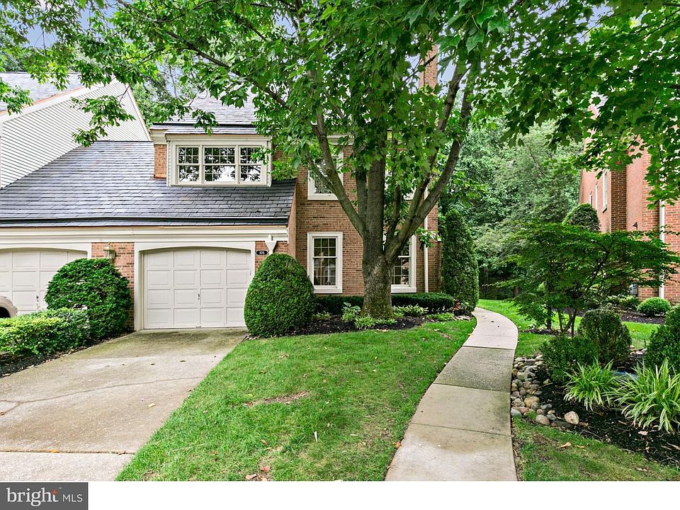 Blason Woods fabulous end unit Home which backs to the woods! Street is like Colonial Williamsburg! Town dates to 1600's and Quakers! Large enough for a family, but also the right size for any buyer that wants an easy life style. Basement will make a great Recreation Room or just extra living space. Decorator Wallpaper throughout, all Decorator plumbing and lighting fixtures. New AC/Heat . The Exposure North/East - South/West Very economical! Don't miss out on this one of a kind beauty! Enter the foyer from the front door with slate floors and you immediately feel at home. The lovely kitchen to the right has Cherry Cabinets, Granite Counters, Large Pantry, Upgraded appliances, neutral stone backsplash and Natural Stone Floor. To the Left of the foyer is the Powder room with a unique Hand painted sink in the cherry vanity and Onyx floors. Wonderful Den/Office off the foyer that gives you extra living space (or bedroom on the main level if needed) has a Fireplace and hardwood floors. Large Living Room has a beautiful Fireplace surrounded by custom Built-in cabinets and bookcases, slider to the outside private patio that backs to the woods. Dining Room off the Kitchen and Living Room is wonderful for entertaining formal or informal gatherings. On the 2nd level there are three bedrooms to include the Master Suite - this room is an oasis for relaxing with a large sitting area that overlooks that backyard, fantastic walk-in closet with organizer and separate vanity to the entrance of the 4 piece Master Bathroom, separate shower, oversized soaking tub and more. The other two large bedrooms have great closet space and hardwood floors throughout. Laundry on the second level makes it convenient for all. A full basement that is ready to be finished and a one car garage finish off this wonderful home that is waiting for a new owner.