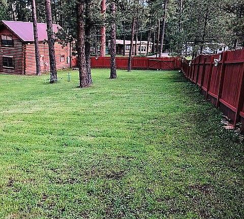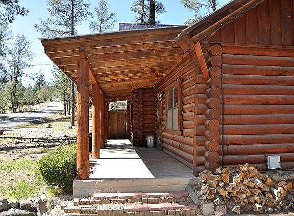 RETREAT TO THE WOODS, in this genuine log cabin on a large lot on the NW side of Ruidoso. The location at 105 George P. White Dr, Ruidoso, NM 88345 provides easy access to schools, shopping, golf, skiing, casinos and the racetrack. The 3 bedrooms / 2.5 bath cabin has vaulted ceilings, a wood burning fireplace, ceiling fans, an updated kitchen with stainless steel appliances and granite top, microwave. Utility room includes washer, dryer and water softener. Master suite is on the main floor. Upstairs are 2 spacious bedrooms with a shared bath. The 3/4 acre lot is level and also has a private fenced backyard with a deck and a drive through gate. A circular gravel driveway and concrete parking pad provide room for plenty of vehicles and a carport could easily be added to the concrete pad. All Village utilities.