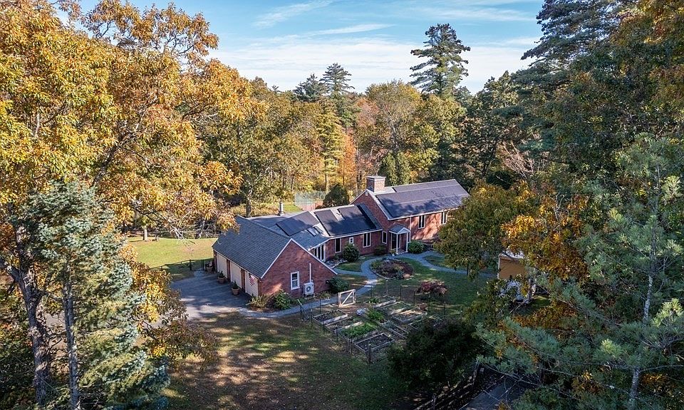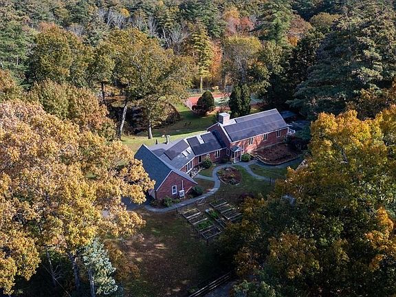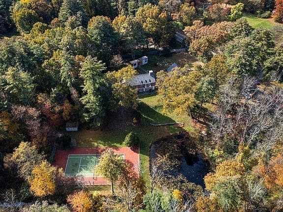Looking for easy highway access (95) yet a peaceful and private location? Looking for a spacious home that offers multi-gen living, a WFH option? Look no further. Nearly 4 acres of natural wooded setting with a large yard, multiple patios and decks, a pond, in-ground pool and tennis court (or pickleball court?) - one won't have to go far to simply enjoy the lovely outdoors. The beauty of this home changes with the seasons & offers stunning views year round. Large chef's kitchen with SS high-end appliances and gas cooktop with island seating - perfect for whipping up daily fare or entertaining large groups. French door from the kitchen opens out to a back patio overlooking your personal pond surrounded by lush woods and yard. You will welcome the chill in the air with 4 fireplaces - one in the kitchen, living room, family room and the primary bedroom. This ranch has 4 bedrooms - the large primary bedroom has a walk-in closet, an ensuite and balcony. Large FR and bonus rm in the LL