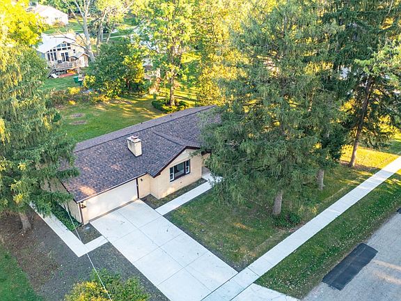 Nestled on a quiet, tree lined street and just around the corner from Lion's Park on the Fox River, this brick ranch sits on over 1/3 of an acre complete with partial water views! The home boasts hardwood flooring, a stone, wood burning fireplace and a generously sized kitchen/eating area. Some kitchen projects have been started giving you a chance to add your own personal touch. The original 3rd bedroom has been opened up into one large primary bedroom with a secondary bedroom down the hall. The full, unfinished basement offers a load of opportunity to add even more living space - the possibilities are endless! Enjoy the close proximity of the Fox River Grove village center, the Metra, parks, schools and dining! Brand new concrete driveway and sidewalk in 2024 and a new roof in 2021. Welcome Home!