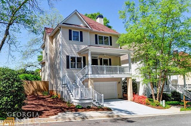Impeccably maintained & move-in ready, you will immediately find yourself at home here! From the generous front porch to the handsome back courtyard you can live indoors & out. Nestled on a quiet street in the heart of Decatur, it is walking distance to award-winning Clairemont Elementary, the Square, & has a private path to beautiful Glenlake Park for swimming, tennis, playground, & more. Very open with kitchen overlooking family room, separated from living room by pocket doors. Boasts 3 bedrooms upstairs, including the master, as well as ample storage & a bonus area in basement. Garage fits 2 REAL cars & provides even more storage. Hardwoods throughout, new roof, freshly painted, dining room for 8-10 & working gas fireplace make this a distinctive home.