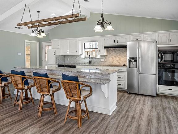 THIS VIEW!! Rare opportunity in Wood Canyon Water subdivision to own a piece of the point. Why wait? Begin lake life immediately and start enjoying your gorgeous sunset views from the huge backyard deck! Exterior features include large lot with approx. 250 platted waterfront feet with steel retaining wall, huge shade trees, protected area with miles of open water views, fire pit area, storage building, fenced backyard and an air conditioned and heated she-shed for crafts, storage or extra play space! Surrounded by high end homes and low traffic. Leave your tools at home because the interior has been freshly painted, floored and refreshed! Open floor plan with 4 bedrooms and 3 full baths, granite kitchen with a huge breakfast bar and views of the lake from every room in the house! 2022-05-20