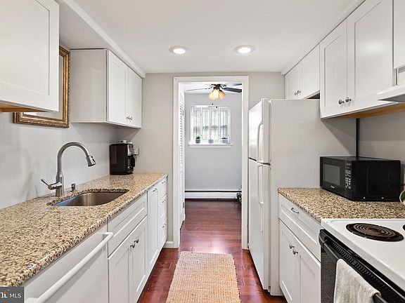 Location, Location, Location!! Do you love the convenience of having shopping, restaurants, and entertainment just across the street? How about being walkable to the train station for easy commutes into Philadelphia and NYC? This is it!! This condo sits directly across from Suburban Square right in the heart of Ardmore! Sitting on the main level, just a few steps down from the entry way, and boasting 2 bedrooms, 1.5 bathrooms and plenty of living/common space. The social space of the condo is great for entertaining and has beautiful new hardwood floors throughout! Plenty of room for a large dining table, family room and even an office area if you need that! The kitchen opens up to the foyer space as well as the family room and was newly renovated with beautiful custom white cabinets and granite countertops. Down the hall you will find a full bathroom to the right with a tub and large vanity for storage. To the left is a spacious guest, office or even extra den space with ample closet space. At the end of the hall sits the extra large master bedroom with half bathroom. This room has a large closet, and is flooded with natural light, as is the rest of the condo. Every window does have plantation shutters if you prefer your privacy as well! This condo is lovely, perfectly updated and move in ready with awesome location. It's simply waiting for a new owner! Welcome Home!