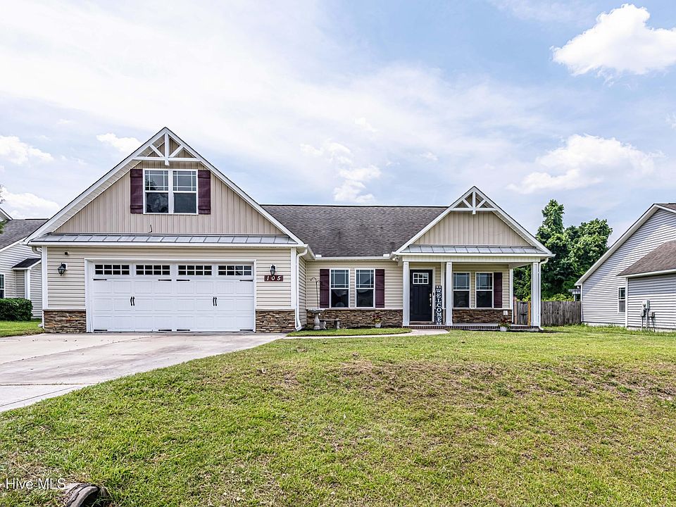 Welcome Home to 105 Gobbler's Way in Turkey Ridge! You will love this 3 bedroom, PLUS BONUS ROOM, 2 bathroom home with FRESH PAINT! This beauty has carpet ONLY in the bedrooms, a large fenced back yard, front and back porches & so much more! The Primary Suite is perfectly situated with a large closet, dual vanities, soaking tub/ shower! The secondary bedrooms are equipped with ample room & closet space! Don't miss out on this gem! Schedule your showing today!