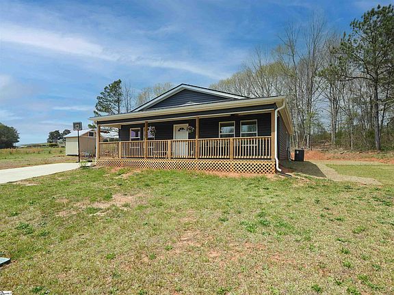 Been searching for a real golden opportunity? Here it is! Better than new, this one-level, 3 bedroom, 2 bath craftsman was built in 2023. Filled with the best features, 105 Golden Springs Lane is your chance to own a newer, charming home that's affordable and easy to maintain. Not to mention, NO HOA! Start with that welcoming feeling you get while relaxing out on the expansive, rocking chair front porch. Inside, take in the neutral palette highlighted by pops of color and lots of natural light. LVP floors and soft carpet lead the efficiently organized, open concept floor plan. The beautiful combined dining space and kitchen features an island with extra seating, granite countertops and plenty of cabinets. Off the kitchen is a spacious walk-in laundry room. Down the center hallway, you'll discover a full bath with tub/shower to the left and two secondary bedrooms to the right. The spacious master bedroom offers views of the backyard, a walk-in closet and an en suite bathroom. The living room boasts custom bookcases and just the right space for cozy movie nights. Outside, you'll enjoy the private feeling of this corner lot measuring .79 acres with a large wooded section beyond the sodded yard. The owners have added sod, landscaping and extra parking spaces. Don't missed the outdoor shed/workshop with electricity, perfect for those weekend projects and extra storage. Golden Springs is conveniently located less than 20 minutes to Easley and Clemson. Start living your best life in Liberty this spring! Listen to that inner voice and go schedule a showing now!