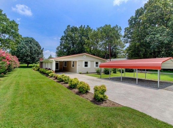 Conveniently located near schools, shopping, and businesses, this low-maintenance home is move-in ready! Enjoy morning coffee on the enclosed sunporch, and cozy up to the fireplace in the spacious family room on cool nights. Prepare meals in the updated kitchen, and entertain guests in the oversized dining room. Enjoy gardening and recreating on the large, level lot; then cool off in the shade of the huge covered porch. With tons of extra storage space including a huge walk-in pantry, attic, detached shed, closets, and carports, this home is functional and convenient. The master includes an en suite bath and walk-in closet. The home offers one-level, low maintenance living with a freshly painted interior, newer vinyl siding, and metal roof.