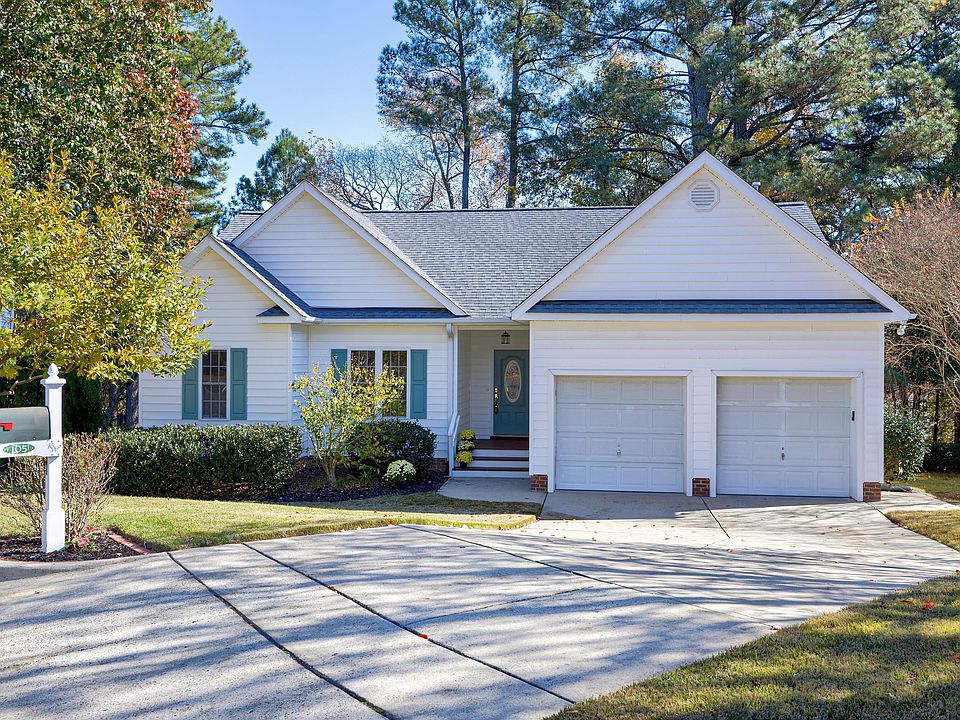 Welcome to this classic 3 bedroom, 2 bath ranch located in desirable Apex. Tucked into a quiet cul-de-sac, this home brings an easy flow with vaulted ceilings, hardwood floors, and plenty of natural light. The kitchen delivers style and function with granite countertops, stainless steel appliances and open to the living and dining areas, perfect for entertaining. Unwind by the gas fireplace or step outside to the multi-level deck overlooking your private, fenced backyard—a peaceful retreat just waiting for you. Both bathrooms were tastefully renovated in 2024 with tile surround and modern finishes. The home has been meticulously maintained with new interior paint (October 2025), roof (2019), and a brand-new HVAC system (April 2025). Truly move-in ready. Perfectly positioned minutes from I-540, Highway 64, and neighborhood Greenway access, you'll have convenience and outdoor escapes at your fingertips. Come see Apex living at its best—stylish, simple, and effortlessly welcoming.