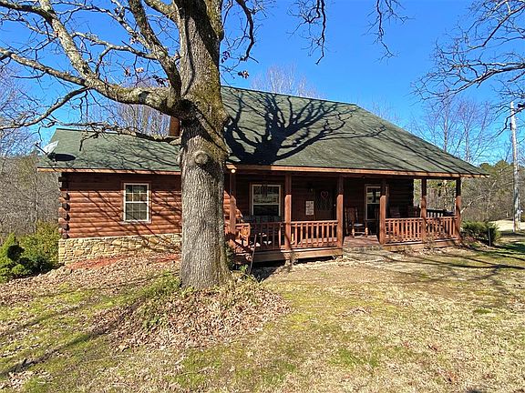 Gorgeous Log Home in the Ozark's famous destination town of Mountain View! This 4 bed, 2 bath, 2,612 sq. ft. home was built in 2006 and features 2 distinct living areas. Upstairs you'll find an open living area complete with a rustic style kitchen, loft area, vaulted ceiling & rock fireplace! There is also a large bedroom, a full bath and access to TWO covered porch areas. The downstairs basement has it's own den, dining area & kitchenette. It also has 3 bedrooms and a full bath. Outside it boasts a 30x40, 3 car garage/shop that can hold all your cars and outdoor toys! All of this is situated on 1.05 acres just minutes from Historic Downtown Mtn. View. You simply can't build a home like this for the price it's being offered!