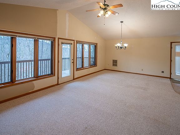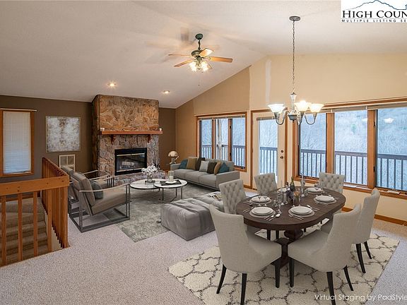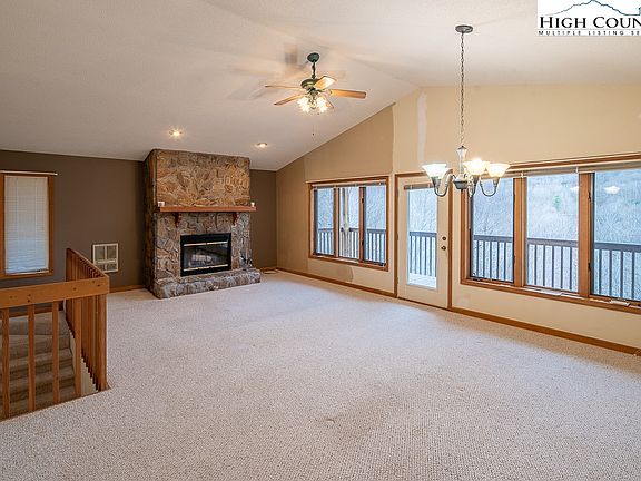 A MUST SEE 4 BEDROOM, 3 BATH HOME WITH A 2 CAR OVERSIZE GARAGE. Lots of additional parking in front of the home. Great ridge view from the decks in the back of the home. Home was built in the 90's offering a popular floor plan. Great room, kitchen, bath and bedroom/den on the upstairs level, also includes a covered deck. 3 Br, 2 full baths on the lower level. HOME IS BEING SOLD UNFURNISHED BUT ALSO HAS BEEN VIRTUALLY STAGED TO SHOW FURNITURE POSSIBILITIES & SCALE OF FURNISHINGS TO ROOM SIZES. Vaulted ceilings in the great room area with a wall of windows brings the outside in. Wood burning fireplace, recessed lighting and window treatments. Full length covered deck of the living and dining room area. Primary bedroom has an ensuite bath, large closet and a private deck. Skywalk connects the garage to the lower level. Outside stairs lead to the back yard, hot tub and fire pit. Large crawl space give the home lots of storage. Short drive to Beech Mountain Club and Beech Mountain Resort. Show and sell.