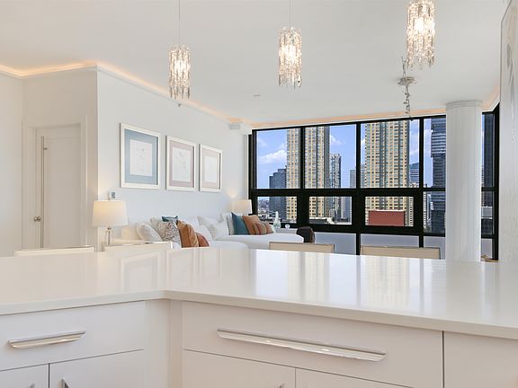 Experience the pinnacle of luxury living in this stunning, ultra-luxury 2-bedroom, 2-bathroom corner residence at Montgomery Greene. Spanning 1,260 square feet, this high-floor masterpiece has been meticulously renovated to the highest standards, offering a sophisticated and tranquil retreat directly on the Exchange Place waterfront. As you enter through a private foyer with custom-laid marble tile, you're immediately welcomed into a showstopping home. Residence 1602 is bathed in natural light, with floor-to-ceiling glass window walls showcasing breathtaking city and open sky views from the 16th floor. The northeast-facing layout creates an airy, light-filled atmosphere that is both grand and intimate. The heart of this home is the entirely new chef's kitchen. Featuring a breakfast bar that flows seamlessly into the expansive living and dining room, this space is designed for modern, open-concept living. Enjoy preparing gourmet meals with top-of-the-line stainless steel appliances, beautiful Quartz countertops with custom under-lighting, sleek European cabinetry, and an exquisite tile backsplash. Both opulent bathrooms have also been fully updated. The spa-like primary ensuite is a true sanctuary, featuring a large walk-in shower with linear drain, dual vanities, and gleaming marble tile. The equally well-appointed second bedroom and marble full bath are thoughtfully positioned on the opposite side of the residence, ensuring maximum privacy. Additional features include a full-size in-home washer and dryer, generous closet space, and all-inclusive utilities (heat, hot water, and gas). This is a home designed to impress, perfect for those who demand the highest level of finish and design. Montgomery Greene is a full-service luxury building that offers a 24/7 concierge, a professional gym, a community room, and a spectacular rooftop terrace with panoramic city views. The rooftop is an entertainer's dream, complete with BBQ, dining, and lounge areas, plus an outdoor shower. Step outside your front door and you are literally seconds from the Exchange Place PATH and NY Waterway ferry, making your commute to NYC just minutes away. The best of downtown Jersey City is at your fingertips, with Whole Foods, Sweetgreen, Cava, Starbucks, and eight amazing dining establishments all within a short stroll. This prime location is also within the coveted PS/16 school district. On-site garage parking is available for an additional fee. Available for October 1st.