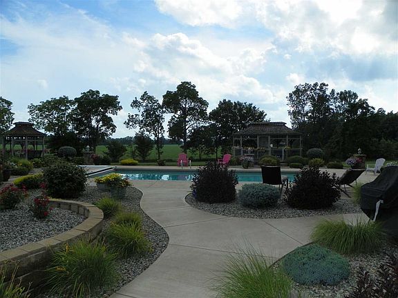 Absolutely stunning home! Coffered ceiling in living room, custom designed beams in breakfast nook, arched openings, crown moldings, niches and shelving through out the home. The kitchen boasts cherry cabinets with granite countertops, stainless steel appliances, built in buffet area and breakfast bar. The master suite with sitting room has tile shower, gorgeous vanity area with arched soffits and columns along side the tub. The upper level has 3 bedrooms, loft, 2 full baths and an additional back stair case. The basement offers wet bar, several niches and built ins, office/exercise room, full bath and large mechanical/storage area. The inviting back yard has an in ground pool, (2) gazebos, beautiful landscaping, and pond view. Other amenities include: tile floors with medallion inserts, Mahogany wood floors, newer carpet, freshly painted, an irrigation system, and epoxy coated garage floors. This is the place to call HOME!