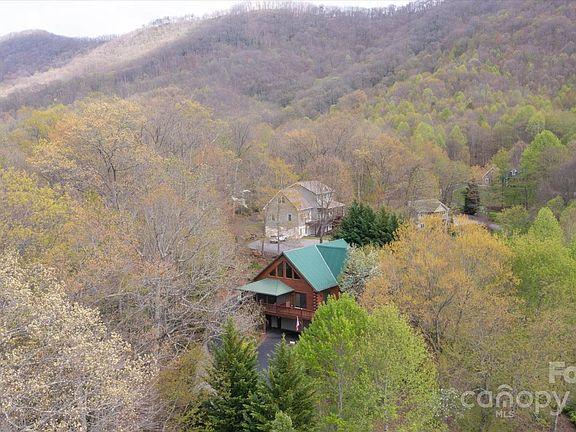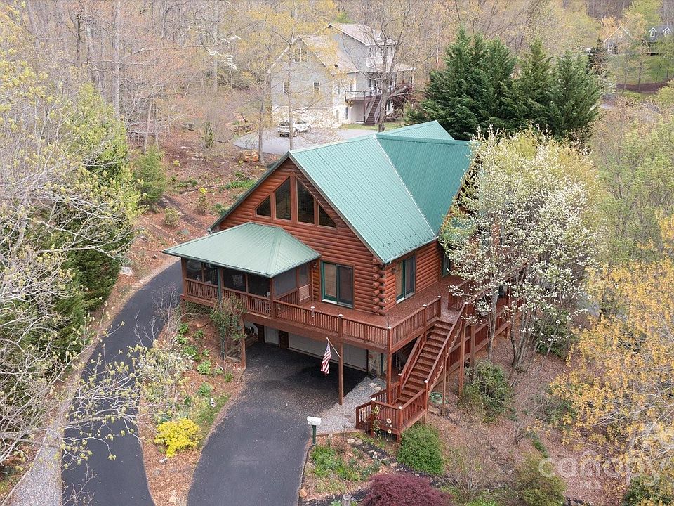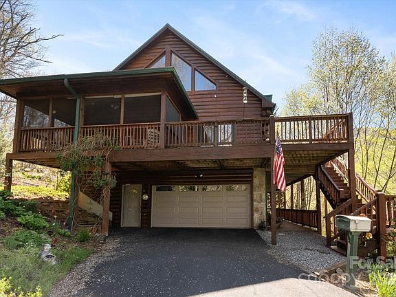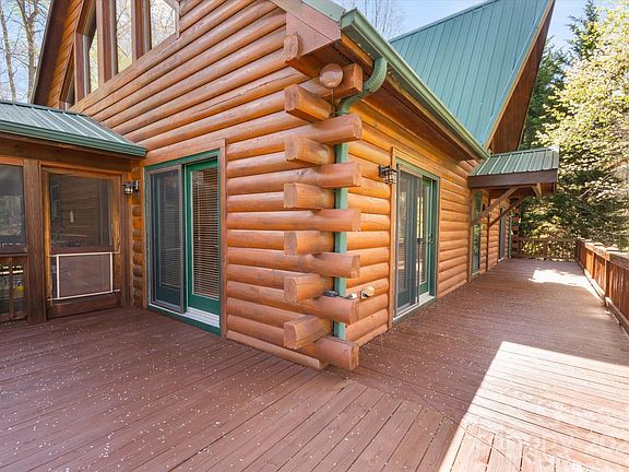 Welcome to this exquisitely crafted log cabin, nestled amid the breathtaking mountains located in the coveted Mystic Cove community! Step inside to discover a custom-designed home with abundant natural light, and expansive windows framing amazing views. Hardwood floors throughout the open-concept living space, a stunning kitchen with custom cabinets, and a large pantry. Embrace the outdoors from a screened-in porch with a charming Dutch door. Two spacious decks are ideal for enjoying sunsets or cozy up by one of two fireplaces. The primary bedroom features a walk-through closet connecting to the bathroom and conveniently linked to the laundry. A 2nd bedroom offers an ensuite. A flex space with a full bathroom that can be used as a 3rd bedroom. Storage is plentiful with an oversized garage, ample closets throughout the home, and a low-maintenance yard landscaped with native plants staged to bloom across seasons. Experience the epitome of mountain living in this idyllic retreat!