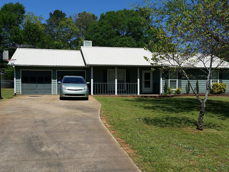 Awesome ranch home featuring 3 bedrooms 2 baths with large fenced back yard and large covered deck, screened in with ceiling fans, outdoor movie theater, and grilling area approximately 16 feet wide by 32 feet long. Level, fenced backyard with detached storage shed. Home features family room, fireplace, ceiling fans, updated kitchen, walk in pantry, laundry room, breakfast nook, large master bedroom, master bath has granite counter tops, nice secondary bedrooms and nice color scheme throughout. Close to interstate, shopping, restaurants, library and park. New TV antenna installed, so no cable bills. (The pool has been removed and the back porch has been covered and extended). Walking distance to newly renovated downtown LG (Slices Pizza, The French Market, parks, Locust Grove Elementary School, and new train watching platform).