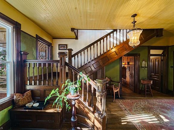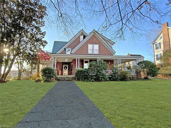 Showings start Dec.8. Pictures and video to come. Measurements attached or contact agent to send. Historic 1910 home overlooks downtown Elkin with original features still in place. Huge lot, garage w/ former maid's quarters upstairs. House has paneled turned staircase, leaded glass window, high ceilings, large rooms with fireplaces in nearly every room. (6 FP's, 4 cosmetic, 2 working) Metal roof, FP in Owners bedroom w/ heated sunroom attached. Upgraded kitchen w/ butlers pantry and 2nd staircase. Home is on the National Registry of Historic Places.