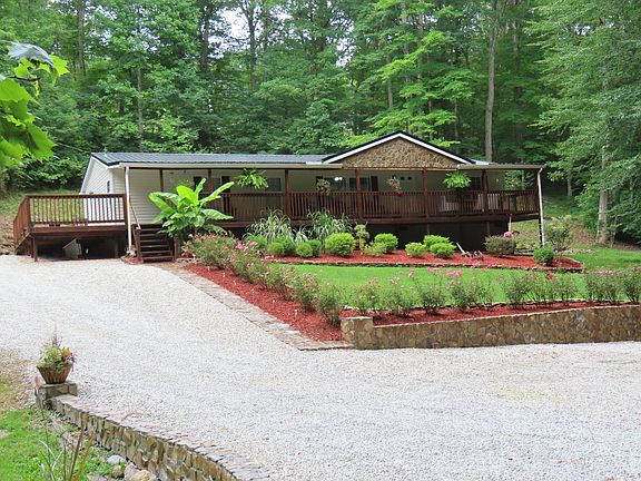 Well maintained manufactured home with solid masonry foundation, huge front porch, extensive landscaping with loads of stonework and perennials, detached garage, firepit and storage shed. Laminate flooring and updated interior.