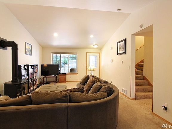 Fantastic 3 bedroom, 2.5 bathroom home w/ greenbelt on 3 sides! Large family room w/ gas fireplace & deck access. Kitchen w/ breakfast bar opens to the dining room. Master suite has full bath and walk-in closet; 2 more bedrooms upstairs. Lots of windows & light. Outdoors: cute front porch, back deck looking into the woods, spacious, level side yard, big back yard & extra parking. Great home - must see! Community features include beaches, pool, marina, golf course, library, 24/7 security & more.